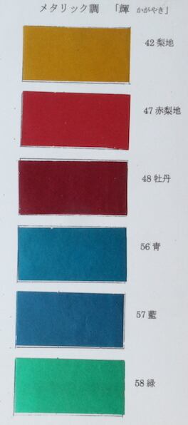 メタリックの色漆です。50g入りになってます。画像は6色の見本です。 metallic colored urushi 6colors sample