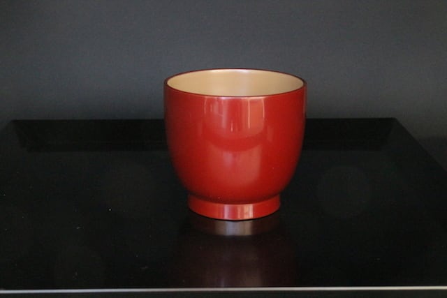 漆塗の湯呑みです。熱いお茶でも木製ですので手に持っても熱くないです。φ73m/mx67m/m